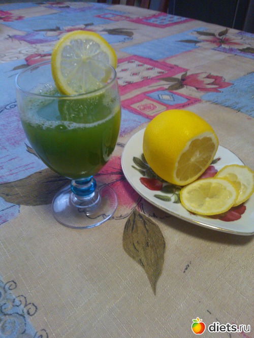 2 Оставшийся сок от огурчиков сливаем в бокал, добавляем мед и лимон и можно пить