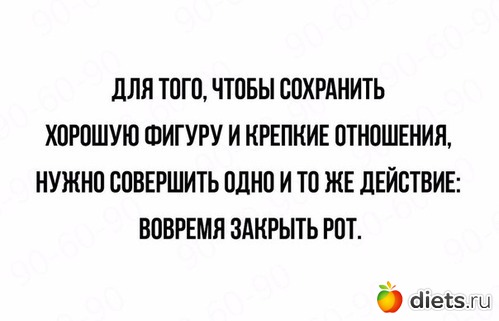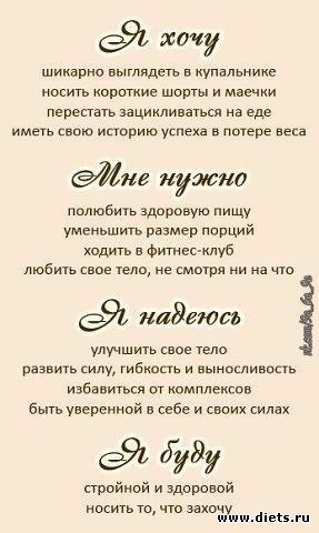 Мотивашки Вот сижу я и чувствую, что мало во мне мотивации... Хотя есть один очень серьезный повод, к которому хочу похудеть. Обклеила весь холодильник всякими мотивирующими записочками, на что мой благоверный сказал: "Совсем сбрендила". Сижу вот, составляю меню на следующую неделю, чтобы заранее знать, что буду кушать, а то без определенного плана у меня ничего не получается. Пусть потрачу время, но зато смогу взять себя в руки. И сюда мотивашек покидаю, чтобы они у меня были ВЕЗДЕ