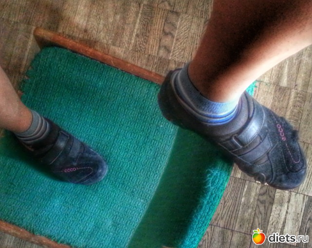 на мусорнике на балконе нашла старый бабушкин стул с короткими ножками. Почему ему их отрезали - тайна покрытая мраком. Однако, я не стала предавать его забвению, а переквалифицировала в спорт-инвентарь и теперь лучшего степа придумать трудно!