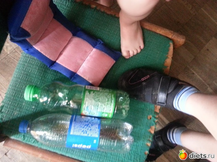 Для усиления эффекта и для продвинутых спортсменов можно добавить утяжеление - у меня пояс с песком, гантели или бутылки с водой. Кстати, бутылки с водой можно использовать на улице. Летом особенно хорошо проводить тренировки на свежем воздухе.