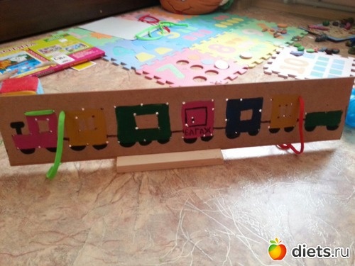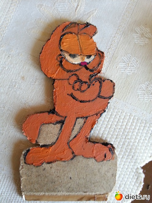 Я тут тоже креативлю - пила, дрель, разломанная панель мдф (самолично на 2 части делила, умаялась по самое не хочу, неделенная не резалась ибо сильно толстая была), акриловые краски и у Лерки новая шнуровка и фигурки Гарфилда и Одди.
