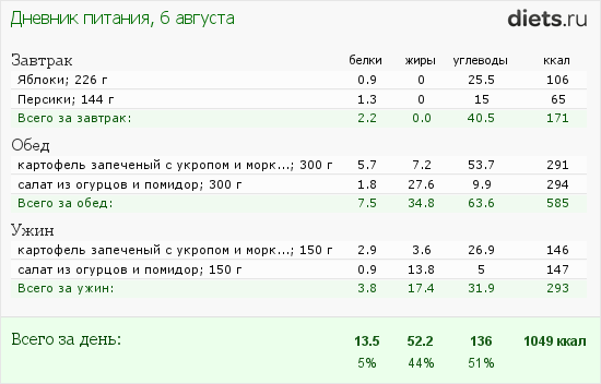 Сегодня в основном меню у меня запеченная картошечка и салатик из домашних огурчиков и помидорчиков. На завтрак яблочко и персик. С утра был выпит стаканчик водички с корицей и медом. Этим же напитком будет закончен мой день.