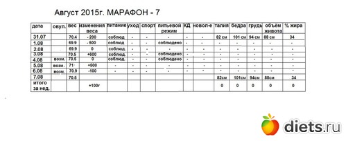 Итого за этот марафон -1кг.100г.обёмы пока не знаю в начале не измеряла, но по вещам свободнее стало.