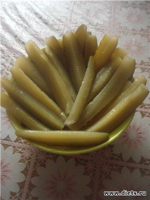 Огурцы брусочками Огурцы нарезать брусочками; если огурцы переросли и длинноваты, то сначала огурец нужно разрезать пополам поперёк, а потом уже на брусочки.