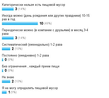 На опрос не ответила, так как ничего не поняла в нем. Что значит - "как часто можно есть"??? Я для себя решила, что ничего этого не ем. Но бывает, что сильно хочется, то тогда можно.