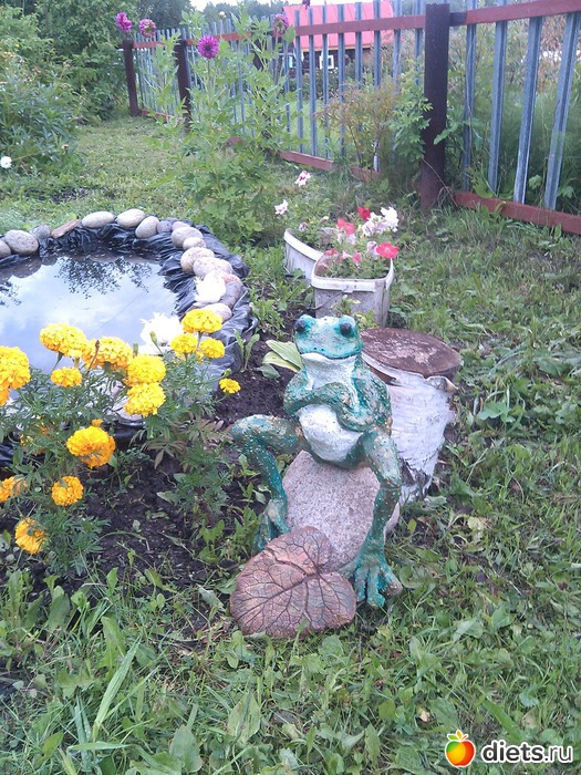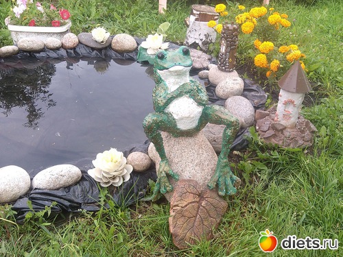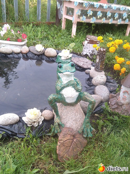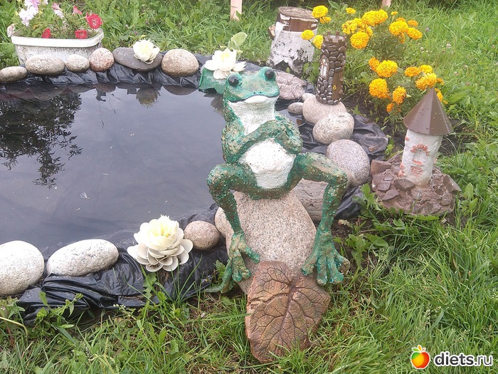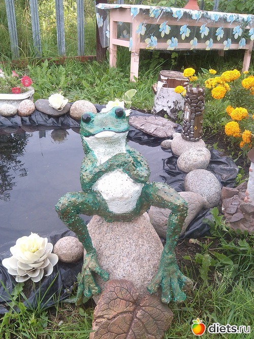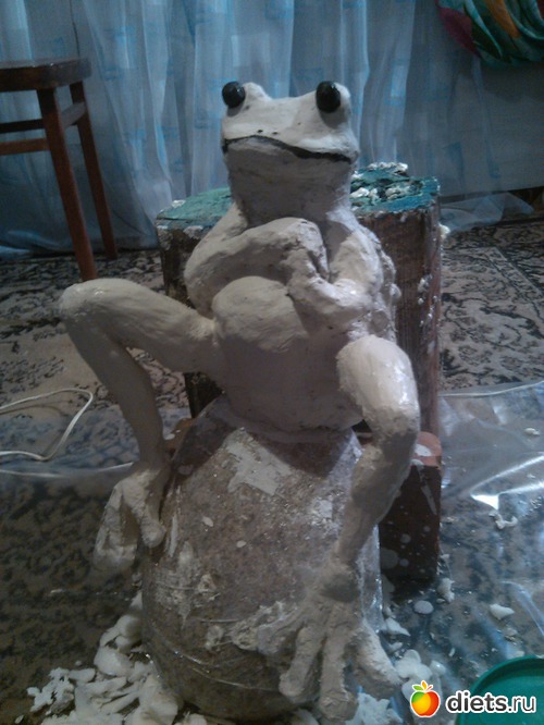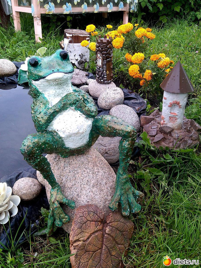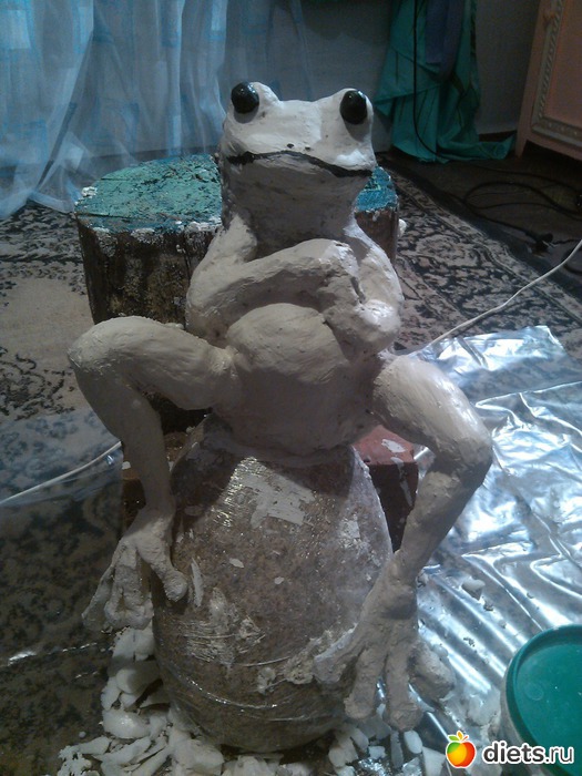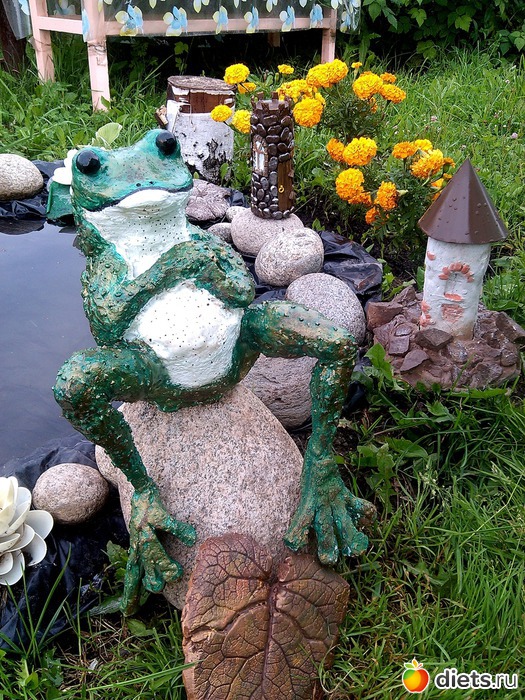 Последняя моя поделка - лягух Жорик из гипса и монтажной пены. Сидит у пруда, философствует...