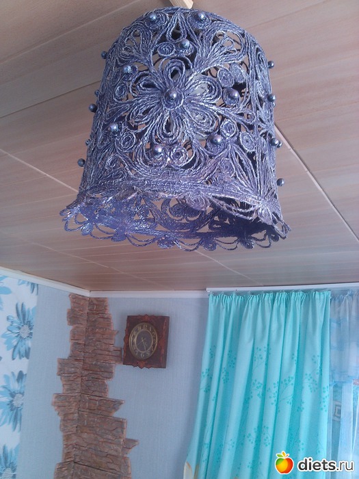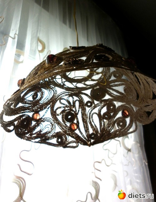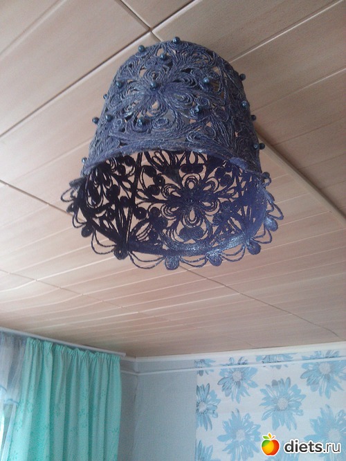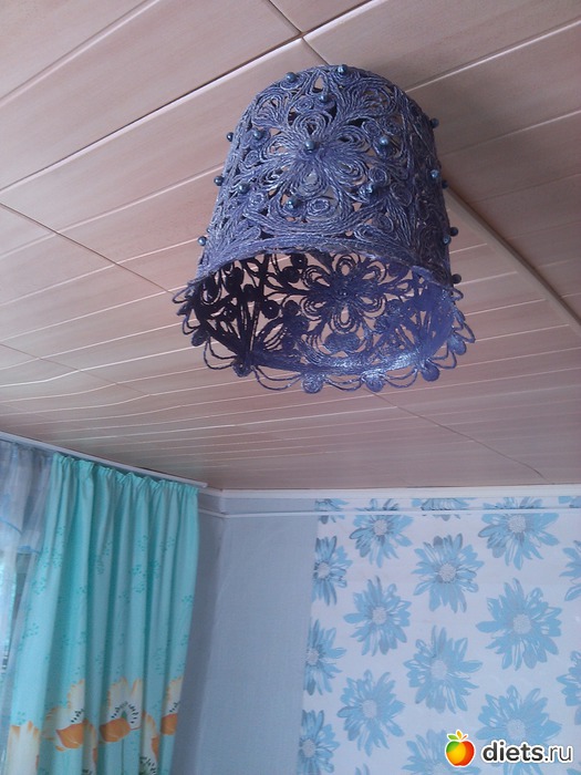 Абажур из джутовых ниток, плела его в прошлом году, этим летом повешен на новый потолок: