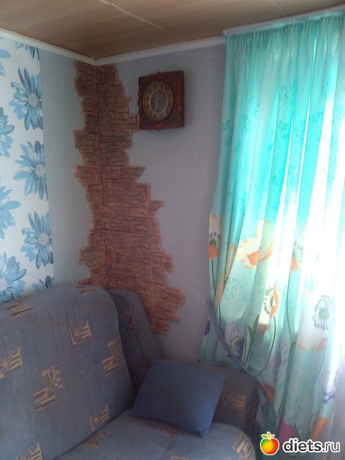 Оформила в домике угол из декоративного камня, поскольку там постоянно отходили обои...