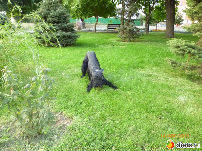 Гансу очень нравится поваляться на зеленой травке. У него после этого настороение повышается и хочется играть и немного подурачиться.