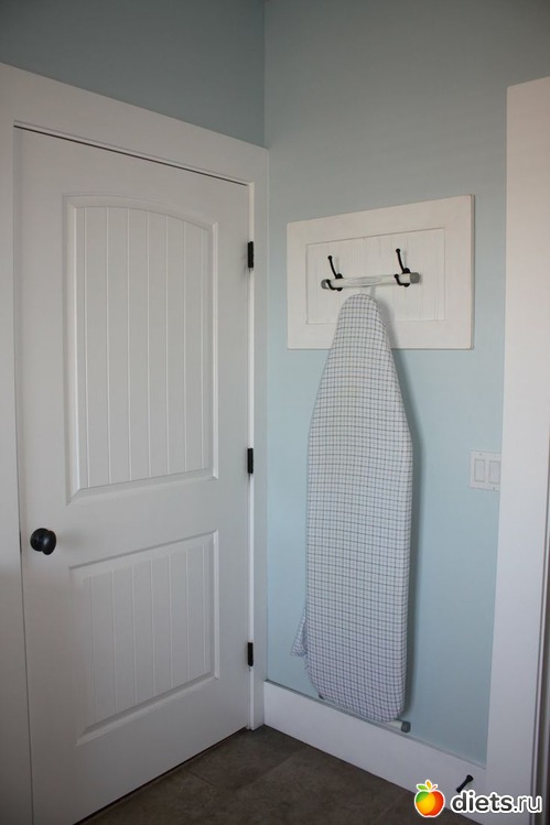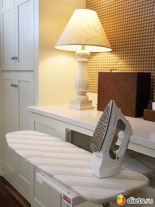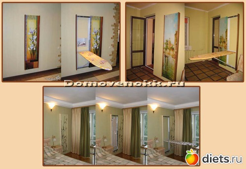 Можно ставить гладильную доску в место, которое не бросается в глаза или скрыто дверью, шторой. Этот вариант не требует никаких затрат.