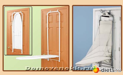 Есть система, которая позволяет использовать гладильную доску, не снимая ее с двери.