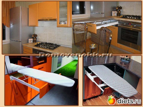 Можно гладилку встроить даже в кухонный гарнитур в один из выдвижных ящиков.
