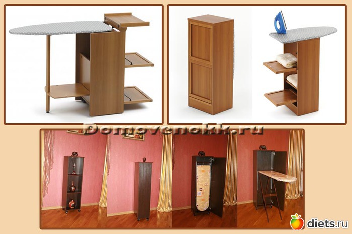 А вот просто тумбочка трансформируется в гладильный центр. (Кстати, мебель-трансформер очень перспективное направление развития мебельной индустрии).