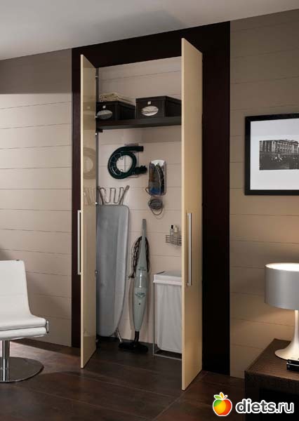 Если же вы совсем не смогли найти место для обычной гладильной доски, то выход все равно найдется. Можно встроить гладильную доску в шкаф или шкаф-купе.