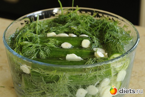 Иметь: 1 кг огурцов (мелких и крепких), пучок укропа, головку чеснока, 2-4 столовых ложки соли (кто как любит),1 литр Сан-Пелегрино (естественно, газированной).