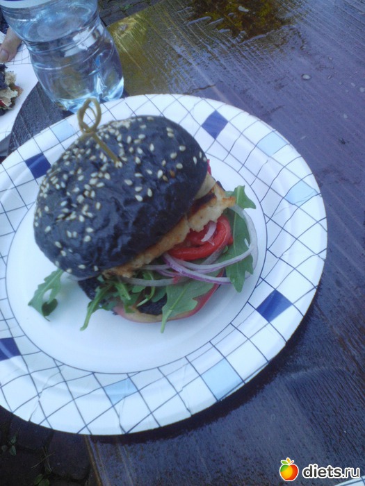 Во первых - гамбургер со щукой, на пшеничной булочке с добавлением чернил... КАРАКАТИЦЫ!