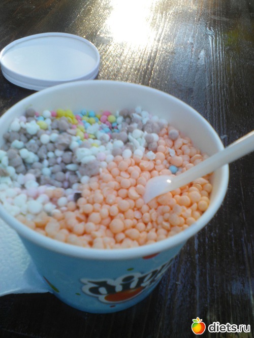 (на вкус, как мороженое, на вид, смесь конфетти и пулек для детского пистолета)