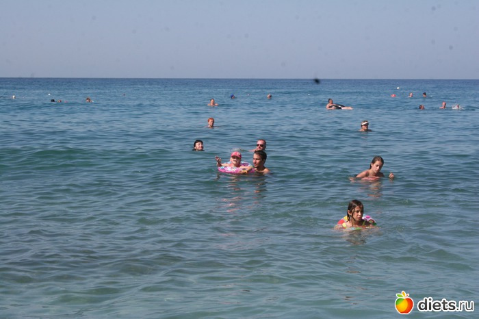 Мор теплое, относительно спокойное, одно неудобство было - берег скалистый, то есть под ногами скала, а не песок или галька, дно неровное и скользкое. Но это все же лучше чем галька в Абхазии. Больше нам сравнивать не с чем.