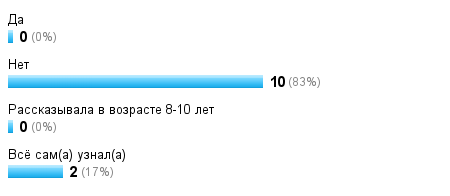 Я вот о чём: дочка знает, как развивается ребёнок внутри мамы - видео смотрели вместе, но вот о самом процессе, то бишь сексе, я ей никогда не рассказывала. Боюсь, что в школе ей такое подрасскажут, что на голову не натянешь. С приукрашенными подробностями и так далее.