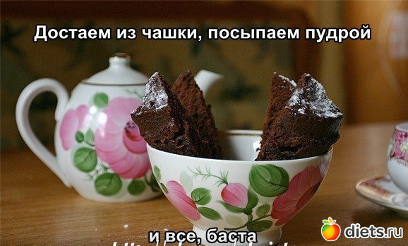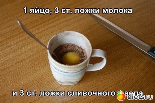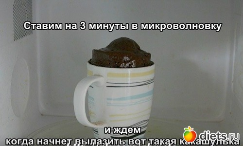 Наткнулась недавно на вот такой рецептик кекса. Банально захотелось сладкого-шоколадного. Кекс печётся в микроволновке, 3 минуты, просто сказка. Делала половину порции, получилась полная кружка шоколадного шикарного кекса. На завтрак может позволить себе даже худеющая барышня, коей я и являюсь. Правда сливочное масло было лишним, в следующие разы я его уже не добавляла. Читать полностью