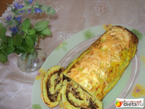 Тесто: кабачки — 2шт, лук — 1шт, яйца — 3шт, мука — 1 стакан,, разрыхлитель — 1 ч.ложка, укроп, соль.