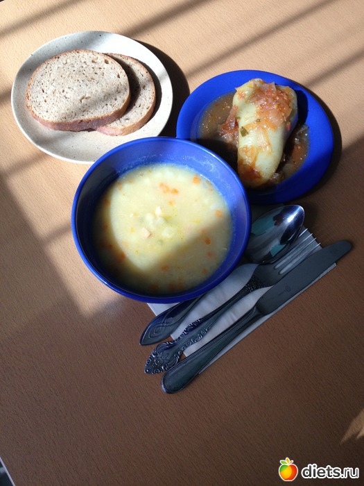 Обедала на работе - гороховый суп и фаршированный перчик. И то, и другое купила в магазинчике "От Палыча". Очень у них много такого стало и по очень не плохим ценам. За суп и перчик отдала 120 руб.