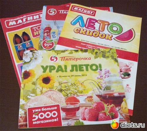 Каждый крупный сетевой магазин еженедельно (а иногда ежемесячно и ежеквартально) издает свой журнал скидок или акций, в которых заманивает посетить его в определенный срок ради определенных скидок на те или иные товары