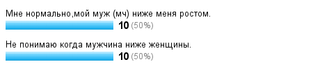 Развелась, конечно, не из-за роста, но знакомилась исключительно с теми кто выше. Чтобы потом не стояло проблемы, что поженились-а рядом некомфортно.