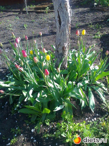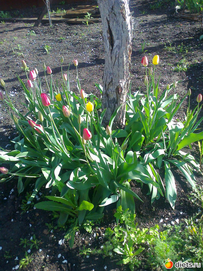 крокусы, мускари, маргаритки, нарциссы, незабудки, колокольчики, купальница, прострел, медуница, анютины глазки, примулы, бальзамины, бархатцы, настурцию, лилейники и барвинки. Можно посадить черемшу — и в конце весны уже будет зелёный салатик на столе.