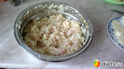 Филе можно пропустить через мясорубку, но так как я ленивая))) и не хочу мыть мясорубку, я мелко порезала слегка замороженное филе.