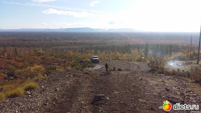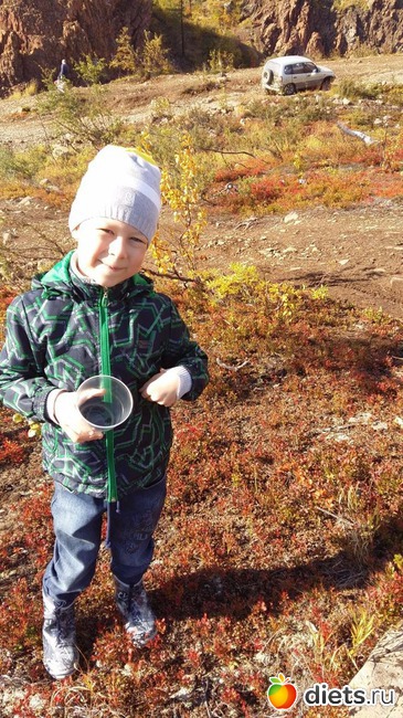Погодка в это время года нас не балует, обычно холодно и дожди постоянно. А в воскресенье такая чудесная погодка была и мы решили поехать в тундру, примерно в км 6 от города находится такое место, называется "Красные камни". За 12 лет проживания в Норильске мы там ни разу не были. Туда очень плохая дорога, огромные камни везде, еще и острые. Но все же наш папа нас решил туда свозить. Егорка всю дорогу туда проспал, машинный он у нас человек, как только в машину садится, засыпает