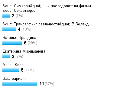 Еще читала интересные книги про Симарон. Смотрела фильм Секрет. Но для таких чудес, как описаны, у меня не хватает веры. Мой муж и его родственники зачитывались "Трансерфингом реальности" Зеланда. Похоже я для этих книг тоже созрела, тк стала часто их вспоминать.
