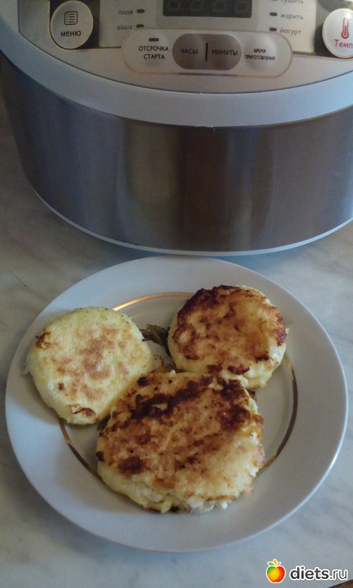 мокрыми руками сделать сырник и с двух сторон посыпать немножечко манкой чтобы не пристали..и в разогретую мультиварку до 200 гр или духовку до запекания. У меня в мультиварке хватило 8 мин для этого