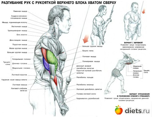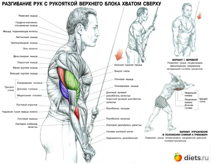 5. Трицепс тяга блока 2 плитки 4*10. (руки прижаты к телу, сгибаю только в локте, работает трицепс)
