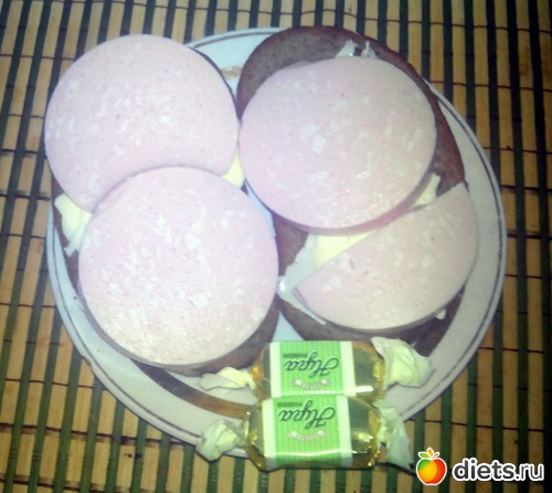 Но!!!! Но все равно рекомендую...(можешь послать меня лесом, я не обижусь...) Рекомендую во второй еде с каждого бутера убрать по 1/2 колечка колбаски...