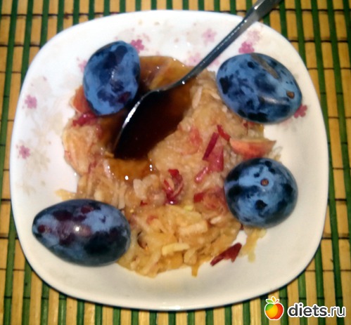 Тертое яблоко с медом и сливы.