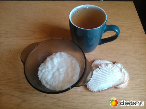 Завтрак - рисовая каша, 2 бутерброда с сыром, зеленый чай...