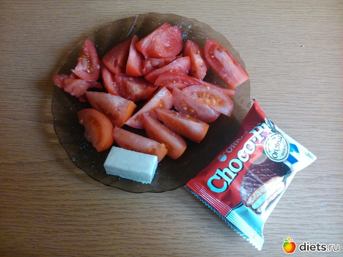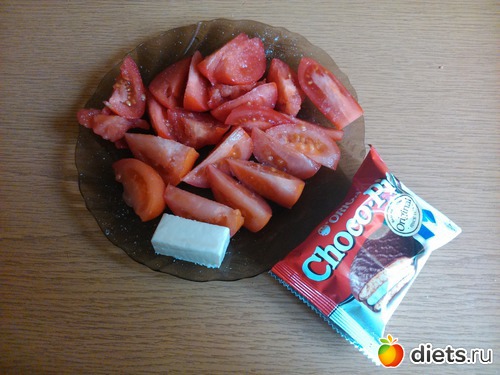 Перекус - 2 помидорки, сыр, вкусняшка...