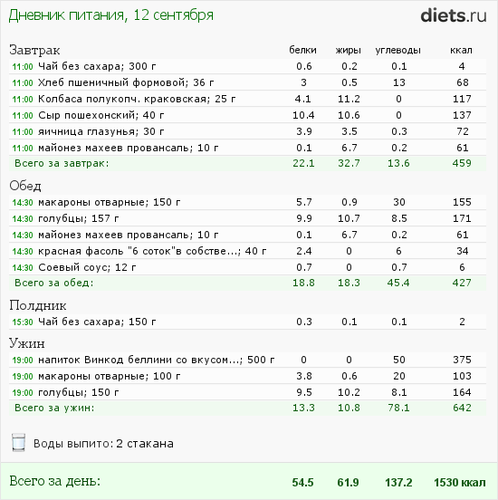 Калорийность продуктов