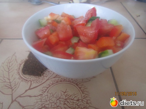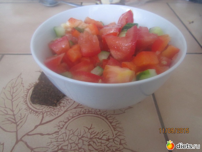 4. салат из помидор, огурцов, сладкого перца, с добавлением оливкового масла