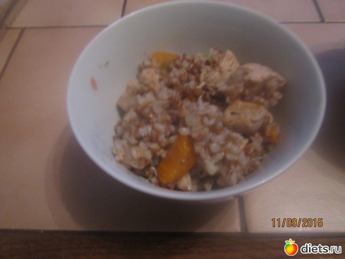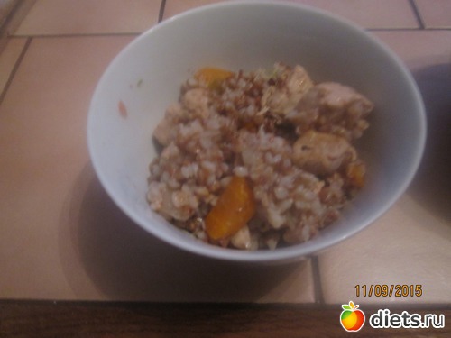 5. тушенная гречка с куриной грудкой, морковкой и луком