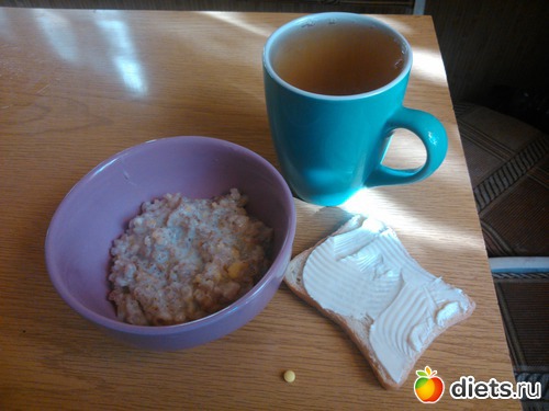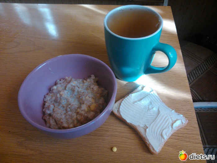 Завтрак - каша 5 злаков, зеленый чай, бутерброд с сыром...
