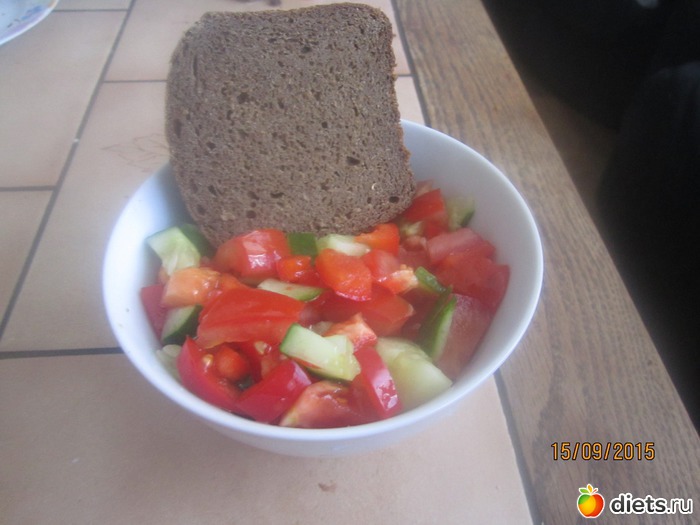 4. салат (помидор, огурец, сладкий перец, оливковое масло), хлеб