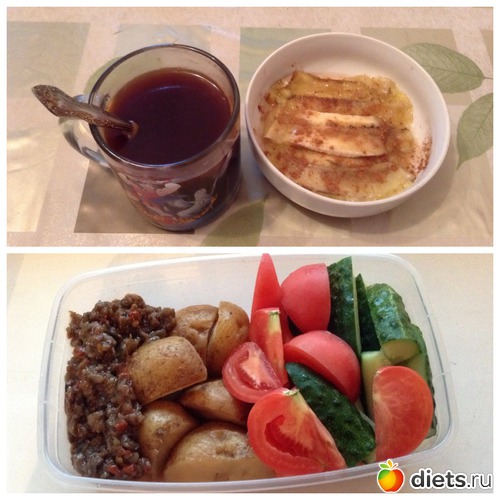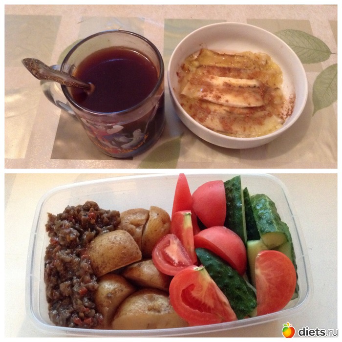 ОиУ: картошка, острая баклажанная икра (или аджика), огурчики с помидорчиками, хлебцы в обед
