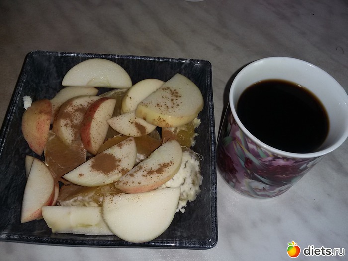 Яблоко и апельсин с корицей. Черный кофе.