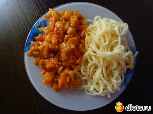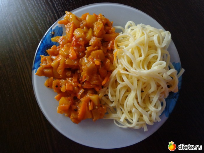 Обед: лапша и тушеные овощи (очень их люблю, поэтому частенько готовлю)