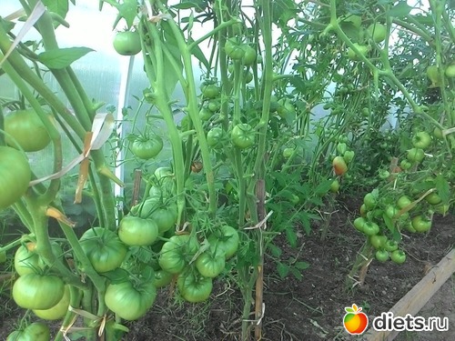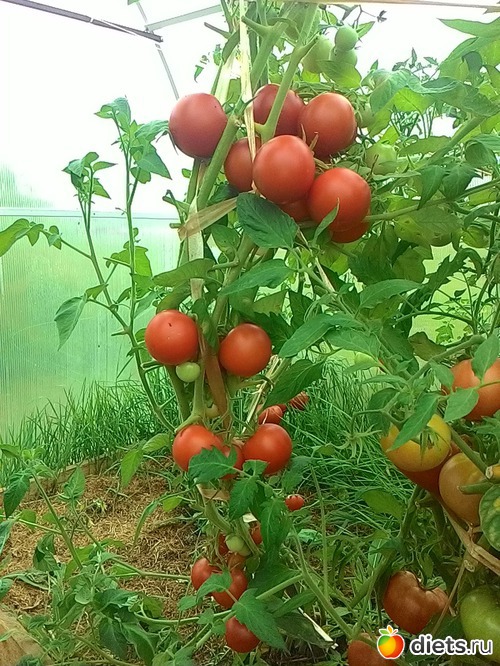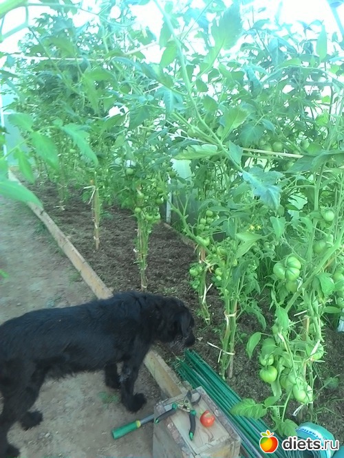 и 4-5 небольших с плотной мякотью (эти на лечо, томатпасту и сок идут и лежат до декабря в коробке приличного вкуса)