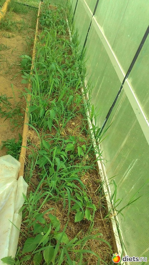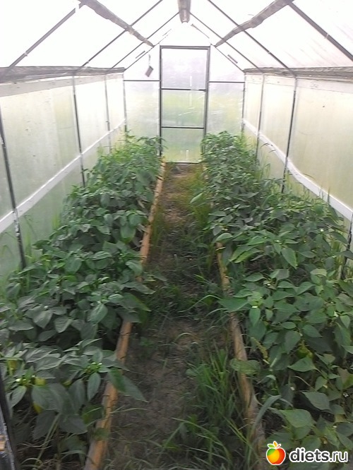 Это видно и по уходу(запущенные сиротки мои, и тепличка некрашеная даже) и по урожаю (поздний он, обычно в августе все красным - красно от стручков)