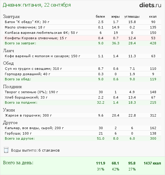 Дневник группы "Диета, основанная на подсчёте калорий":