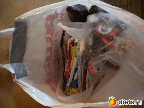 Вчера поехала и сдала (то, что там банки и бутылки сбоку - это не мусор, т.е. не бытовой мусор - это я на разведку выясняла, принимают ли они там в переработку алюминий и стекло).